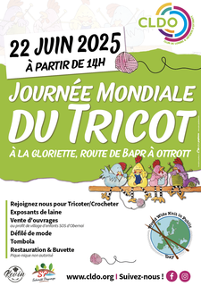 À l'occasion de la Journée Mondiale du Tricot, la section Tricot du CLDO organise une manifestation dédiée à cette activité. Venez avec votre ouvrage et Tricoter/Crocheter en public dans un cadre champêtre avec bonne ambiance et sous ambiance musicale. C'est aussi le moment de vous réapprovisionner en fourniture et laine auprès des exposants présents. Il y aura également une vente d'ouvrages et une tombola (gagnante à tous les coups). La recette sera reversée à l'association Village d'Enfants SOS d'Obernai. Vous pourrez assister au défilé de mode des Tricopines et Tricopins.